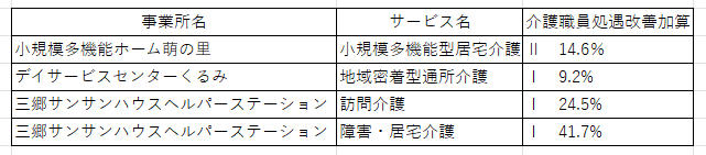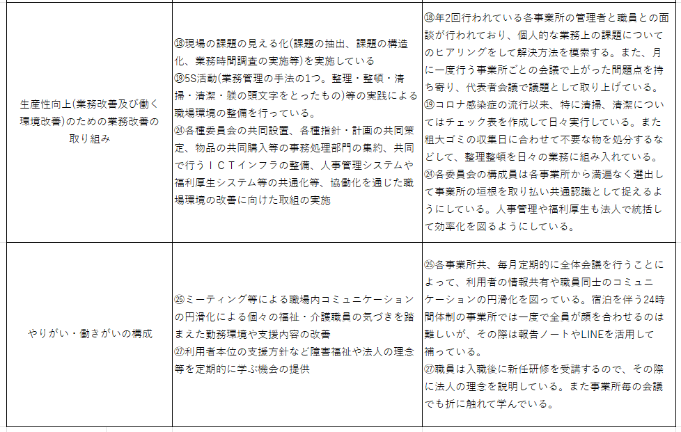 以上の要件に基づき当法人における処遇改善加算の取得状況及び職場環境要件につきまして、以下の通り公表いたします。